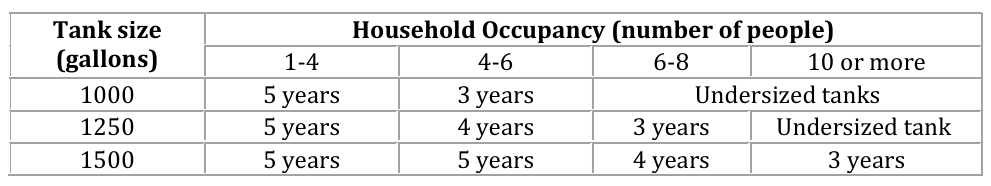 아래는 미국 기준으로 정화조와 배수장의 대략적인 크기를 보여주고 있습니다 (평지·보통 흙, 3~4 bedroom)